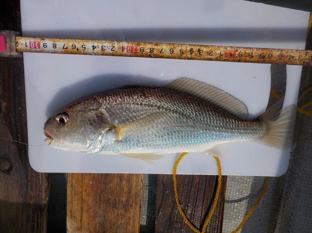 ついにビシに反応があり久々の魚の感触。良形モッチー。贅沢はいいません。
