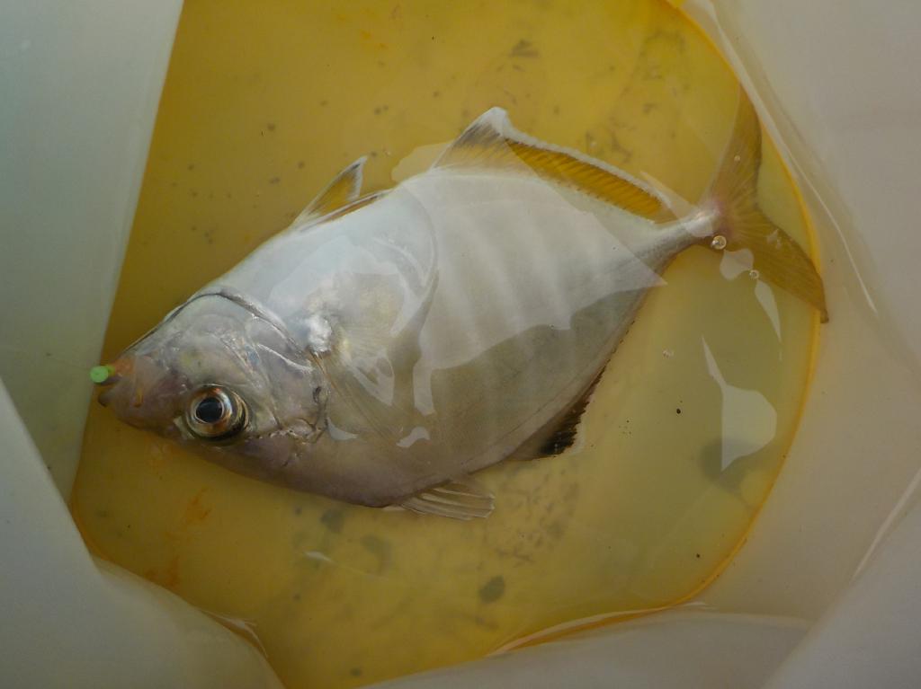 ミニミニイトヨリ。ネンブツダイかと思ったくらい。前回の三平クンのモンスターイトヨリを見てるのでリリース。