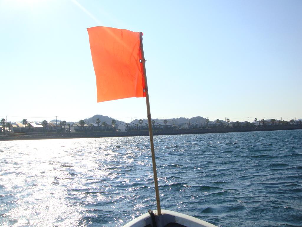 大津名物恐怖の南風。昼前から急に吹いてきます。店の注意書きにもありますが、実際に体感するのが今回初めてでした。上の写真で岸寄りに移動したのですが、アジが釣れ始めたのもあって若干上がるタイミングが遅れ、慌ててアンカーを上げて必死に漕いで海苔ダナをかわしプール前まで退避。兆候が出た時点で一気にプール前の安全圏まで行った方がよいですね。大変でしたがいい経験をしました。