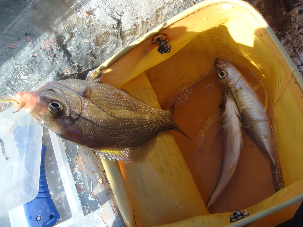シラコダイというそうです。夏は臭いが冬はうまいらしい…。なんかついでにベラもいるが。