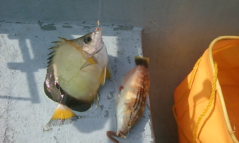 こいつも伊豆名物です。まぁエサ取りは覚悟の上…でしたが、その後もキタマクラの猛攻で軽いパニック状態。