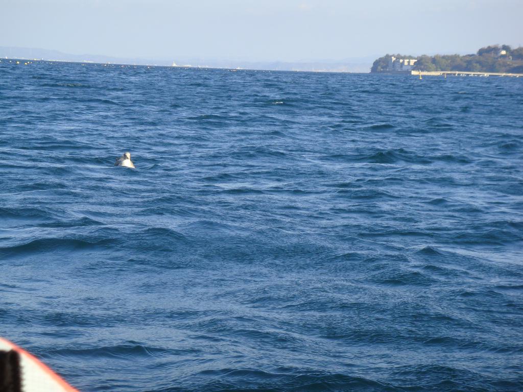 プール前ではまったく反応なし。安全圏でも風でこんな状態。…ウミネコは平然としているが海面下では足を猛烈にバタバタしてるのか?