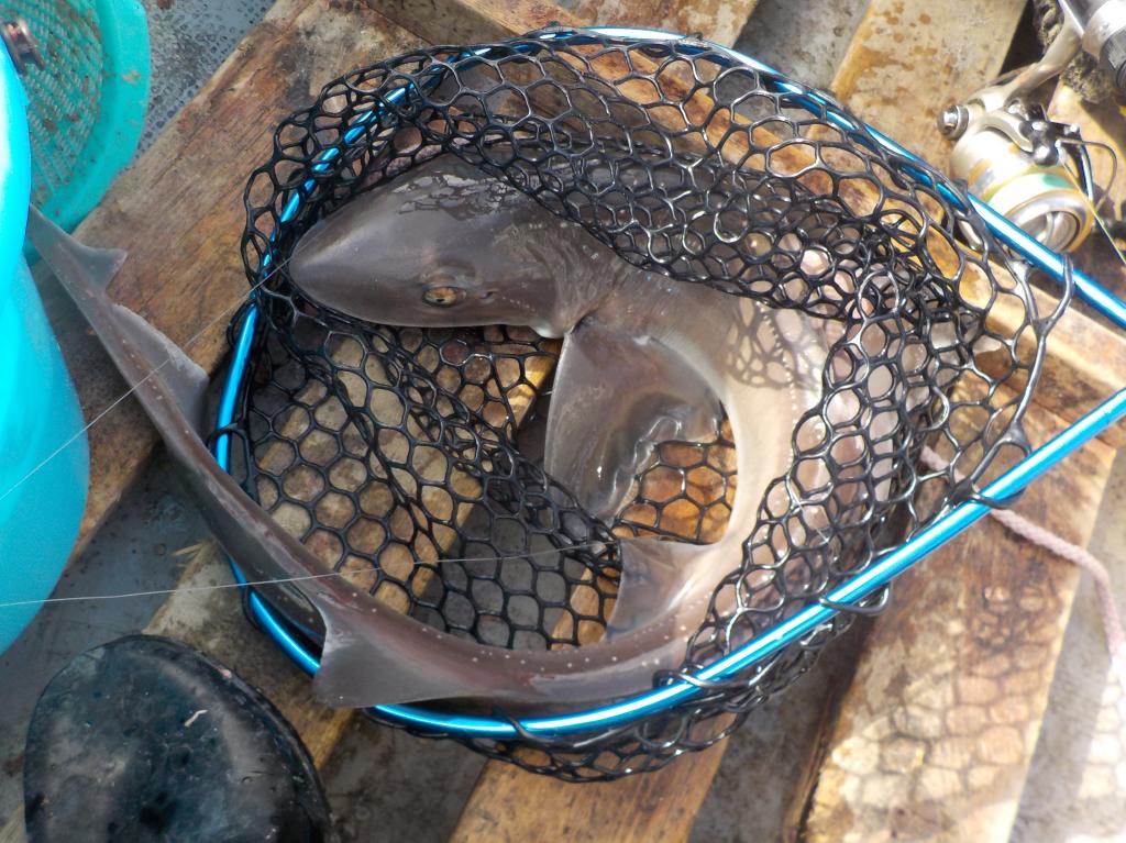 ビシタックル初獲物は80センチのホシザメ君でした。去年大津で三平クンが釣ってたっけ…