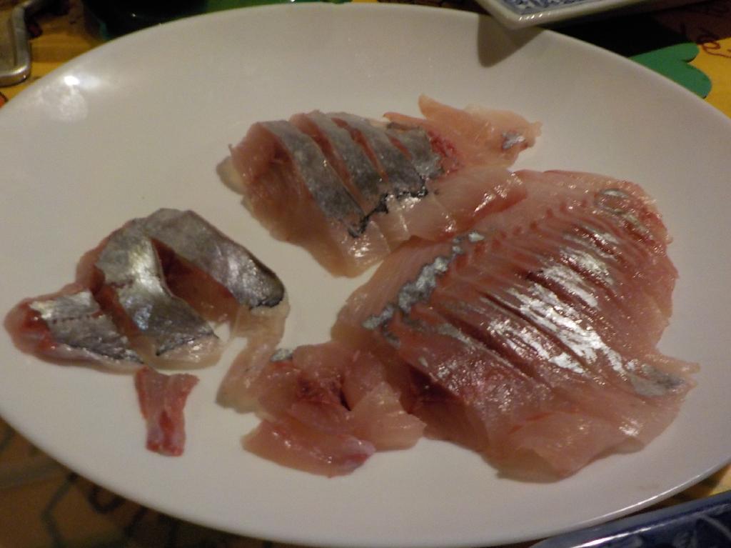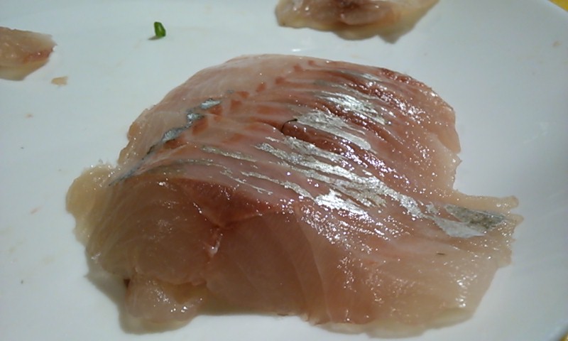 ホウボウはお刺身に。この魚、歩留まりが悪いのですが、今回は大きくてよかったです。頭とか背骨まわりは味噌汁に放り込んでアラ汁にするといいダシがでました。浮き袋も湯引きして氷水でシメてポン酢で食べましたがオツでした。